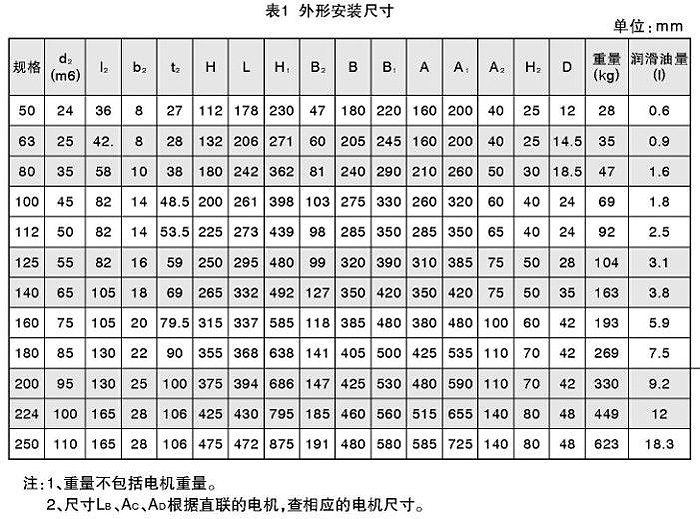 一般配用Y系列三相異步電機,輸入轉速1500r/min,電機安裝形式為B5或B35;
