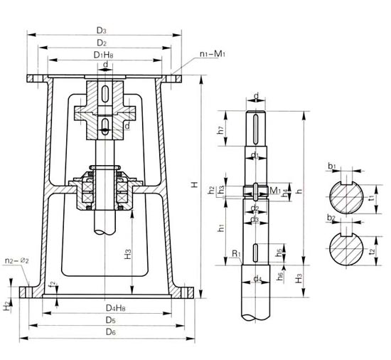 | JXLD型 | d | JBLD型 | d | d1 | M1 | d2 | d3 | d4 | R1 | t1 | b1 | t2 | b2 | h1 | h2 | h3 | h4 | h5 | h6 | h7 | h |