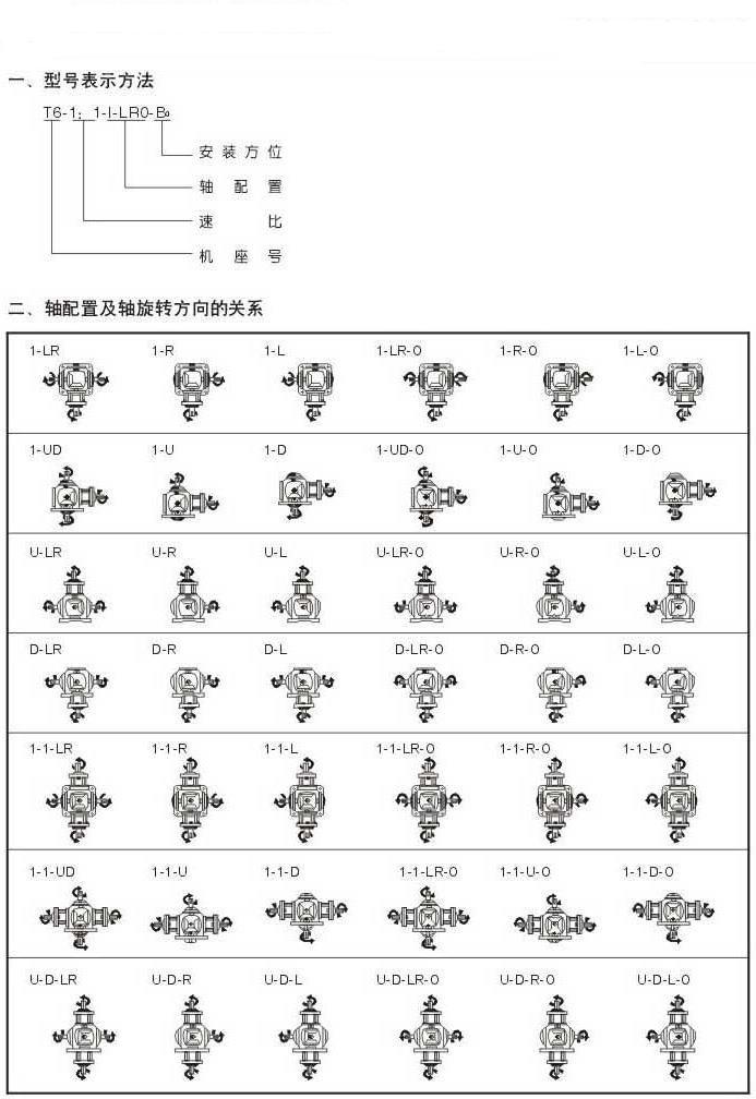 T系列螺旋傘齒輪轉向器采用全系列模塊化式組合設計制造,低噪音、高轉矩、無漏油,單伸出軸、雙伸出軸產品。 結構、特性與反應: 機殼:高剛性FC-25鑄鐵鑄造; 齒輪:齒輪采用優質高純凈度合金鋼20CrMnTiH滲碳淬火,及研磨而成; 主軸:軸類采用合金鋼調質、高懸重負荷能力; 軸承:配備重負荷能力的滾錐軸承; 油封:雙封唇片的油封、兼具防塵及防漏油的能力; 潤滑:適當的潤滑油使用,可以發揮轉向機的效率,并提高其運轉的壽命。 a.初期使用二周或100-200小時,為初摩耗期,這之間可能有少許金屬摩耗粉粒,請務必清潔內部,并換 新潤滑油。 b.長期使用時,每半年-一年或1000-2000小時更換一次潤滑油。