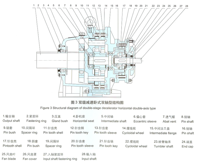 3.結(jié)構(gòu)緊湊,體積小,重量輕。體積和普通圓柱齒輪減速機相比可減小2/1–2/3。