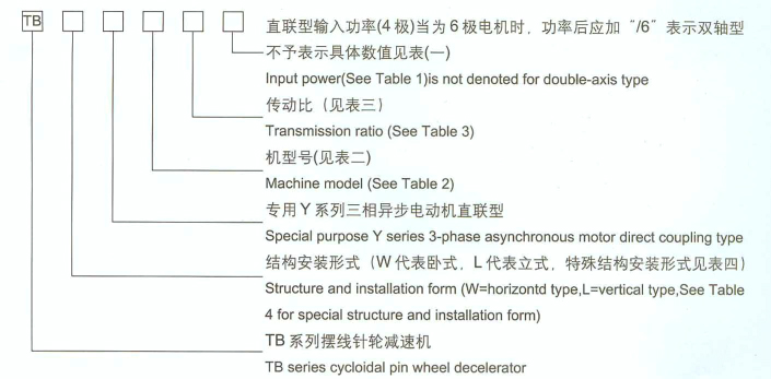 TBLY擺線針輪減速機為專用異步電機直聯(lián)型、法蘭式立式安裝