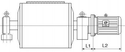 注:圖中Ll值為輸入支座中心到輸入軸軸伸肩胛的尺寸,如為WⅡ式直聯(lián)接軸型外置式電動滾筒時則為輸入支座中心到電機法蘭端面的參考尺寸。