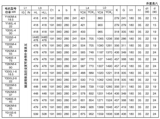 2.電機機座號大于Y200時建議使用B35式電機,上表中字母定義參見外置六。